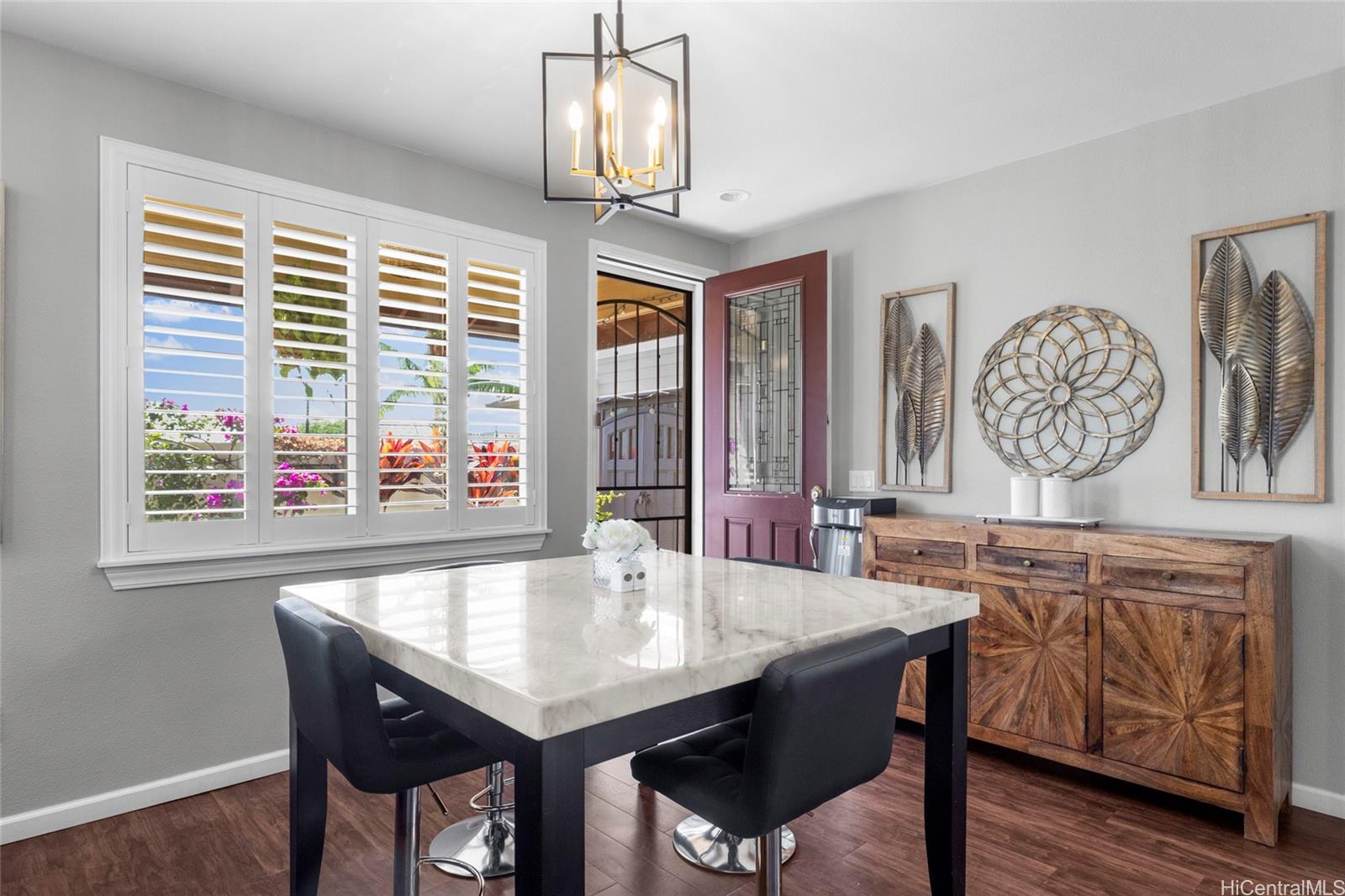 Beautifully maintained 3-bedroom, 2.5-bath home in the desirable Kukuna at Mehana community. Situated in a quiet cul-de-sac near schools, shopping, and dining in Kapolei. Features include split A/C units in every room, vinyl plank flooring downstairs, and new carpet upstairs.The open-concept kitchen offers stainless steel appliances, while the beautifully upgraded bathrooms add a modern touch. Plantation shutters throughout the home enhance style and energy efficiency, and solar panels help reduce utility costs.Enjoy a vinyl-fenced backyard ideal for pets and entertaining, with convenient guest parking located adjacent to the home.