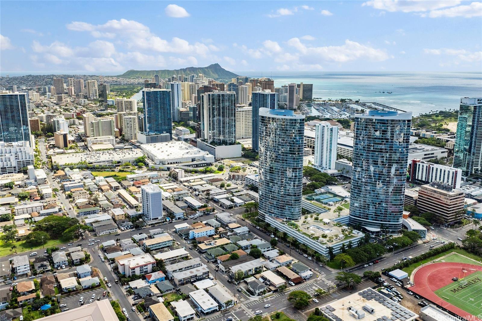 Located in the highly desirable Kaka‘ako Development District, this unique property presents outstanding upside with future income potential. Zoning allows for select commercial uses—please refer to the MLS Land Use attachment for permitted development options. Currently configured as a 6-bedroom, 2-bath single- or multi-family home, the residence features a durable tiled lower level and a flexible two-story layout with independent entrances, just one block from Kapi‘olani Boulevard.The upper level offers three bedrooms and a full bath, highlighted by classic plantation-style windows. The lower level includes an additional three bedrooms and full bath, ideal for extended family living or separate occupancy. Both levels include full kitchens, with the upstairs kitchen recently updated with new countertops and upgraded cabinetry. Bathrooms on each floor feature refreshed porcelain tile showers and flooring.A generously sized backyard provides an excellent space for gatherings or outdoor enjoyment. Additional features include a covered carport and on-site coin-operated washer and dryer. Conveniently situated near Ala Moana, Ward Village theaters, shop.