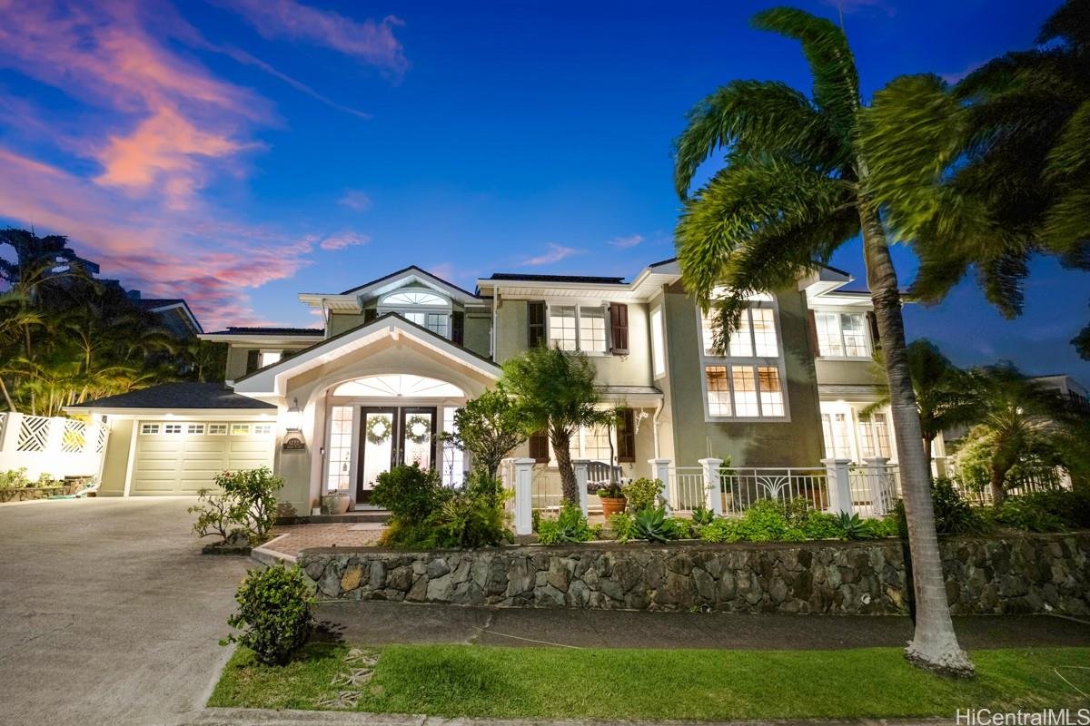 Immaculately maintained Executive home, thoughtfully upgraded, in Kailua's coveted Hillcrest neighborhood! Having left no stone unturned, this home features numerous upgrades exhibiting the highest quality components, craftsmanship and materials throughout. Australian Eucalyptus hardwood floors guide you through the dining area where you'll find a stunning French inspired kitchen complete with Becker Studio cabinets and an expansive island. Adjacent to the kitchen is a welcoming entertainment room with surround sound and a bedroom with an en suite bathroom on the main level. Upstairs, there is a view of the ocean as well as Mt. Olomana in the distance. The primary bedroom takes full advantage of the mountain views, aided by a covered lanai overlooking the manicured backyard. In the backyard, you're greeted by a whole host of fruit trees and seating areas that provide privacy and an inviting space to relax. From top to bottom, this home was designed with comfort and ease of living in mind with luxurious touches everywhere you look. Also includes 28 OWNED PV Panels. You won't want to miss this rare Kailua offering!