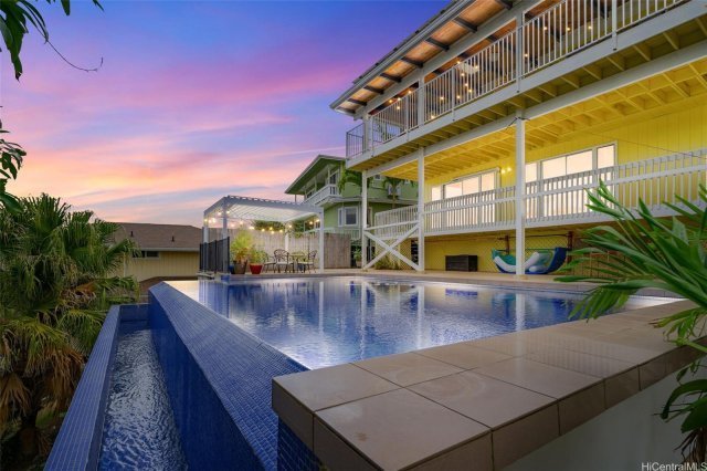 YES, YOU CAN HAVE IT ALL! Incredible panoramic VIEWS of both the Koolau mountains and across Kailua Bay, an infinity pool, a hot tub, an in-law/rental studio with separate entrance, owned solar panels, fully furnished turn-key... 4 bedrooms and 4 full baths. Dine on your expansive deck with Tiki bar, grill at your poolside bbq area. Enjoy mango and avocado in season and lime and calamansi year round. Just minutes from world famous Lanikai and Kailua beaches. One of only a few homes with a pool in the highly desirable Hillcrest neighborhood. Walk in and be immediately captivated. Call your agent today!