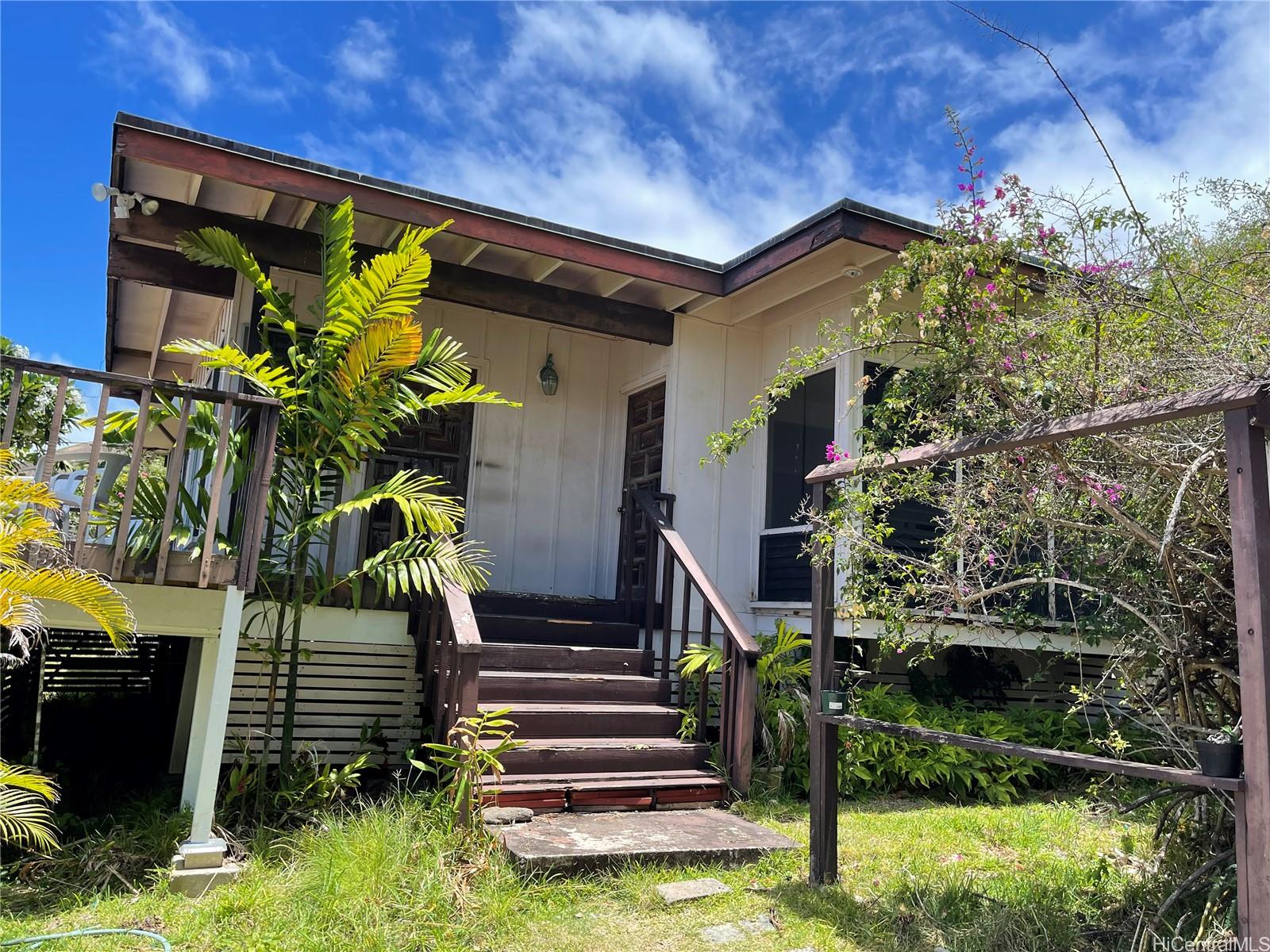Open House Thursday 9:30-11:30 AM. Enjoy the Lanikai beach life in this Aalapapa Road home. This property is a flag lot - it is the back house that is for sale - enjoy extra privacy. You can see the top of Moku Iki from the deck. There's a better view from the roof, of course! Fix this one up or tear down to build something new - your Lanikai life awaits.