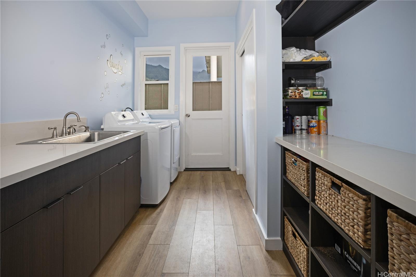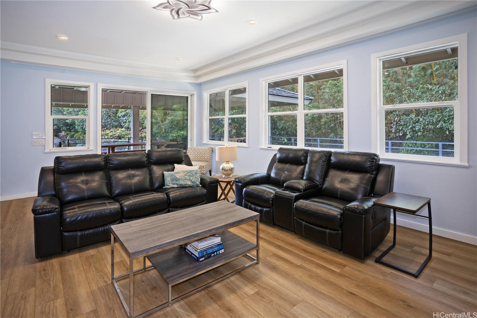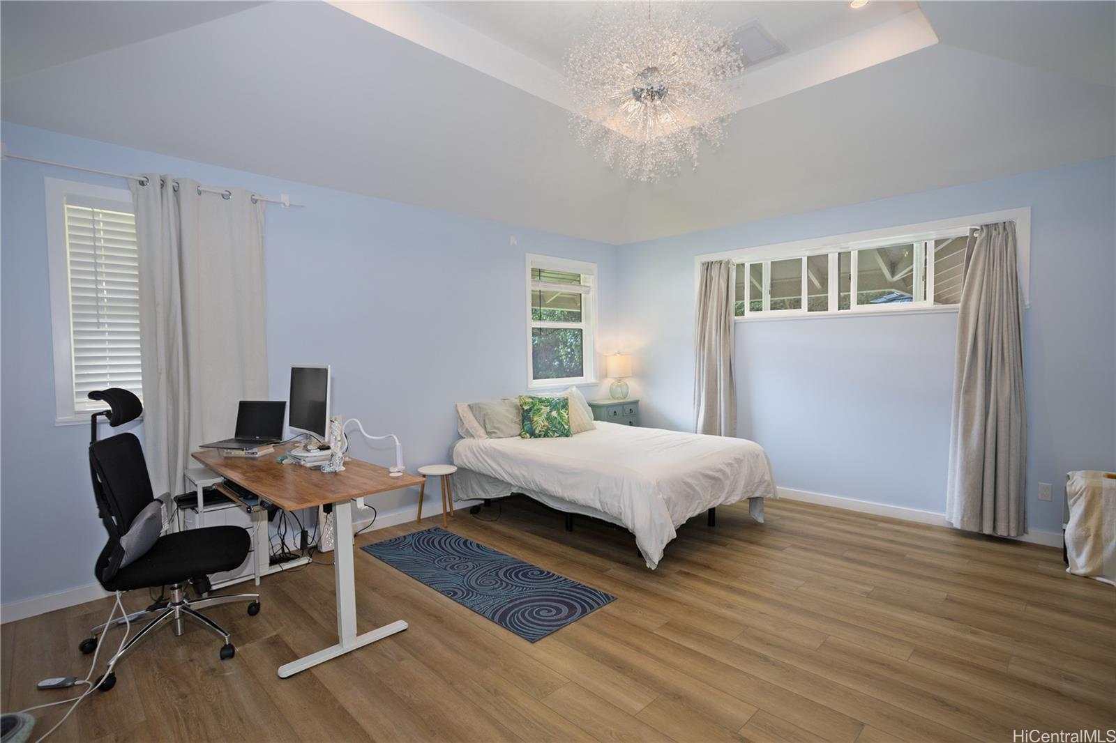 Get ready for Old Pali living in the modern era! Feast your eyes on this 2022 remodel on a massive 20,000+ square-foot lot gated for privacy. The main home features 4 bedrooms, 4.5 bathrooms, and offers luxury living. Each bedroom has its own en suite bathroom, walk in closet and all but one are on the main floor, which features luxury vinyl plank flooring. Gourmets will adore the expansive kitchen featuring an 8-burner gas stove, Viking appliances and an island for extra prep space. There's also an adjacent bonus pantry space off the laundry/mud room. This home is perfect for entertaining as there's tons of parking, a great room, a sunken living area with a fireplace and a gigantic outdoor covered lanai. Enjoy indoor outdoor living in Nuuanu with ample yard space. Although it's typically cooler, you can also close everything up and run the split AC and dehumidifiers were cleverly built into the remodel. The property also contains a separate 2-bedroom, 1-bathroom cottage, perfect for visitors or multi-generational living. With its fenced yard, this home is a perfect sanctuary for your furry friends. Must see to appreciate and shown to qualified buyers upon request.