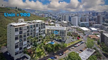 Charming, Affordable 1 Bedroom in Town. It doesn't get cuter than this! The high beamed ceiling, with windows in every room, make this apartment filled with light and height feel bright, spacious and airy. Upgrades include flooring, shower area, lighting and added shelving. The monthly fee is low, street parking is readily available and the location is ideal. Small, well-managed boutique building with a lovely, large rooftop area to take in the beautiful ocean, city and mountain view. Tropical landscaping and grass areas enhance the sense of a gated and calm oasis, set directly across the street from the backdrop of vegetation of the slopes of Punchbowl. VA approved financing, Investors, First-time buyers or Owner Occupants this is a unique opportunity to own a wonderful fee-simple property.