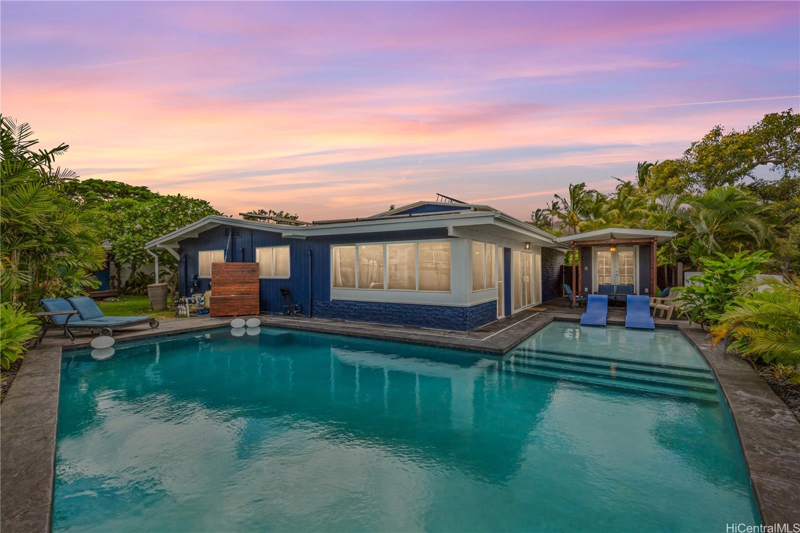 COUNTRY CLUB KNOLLS has an ideal location, just around the way from Kailua Beach Park, but with no through streets keeping traffic to a minimum. This large home offers 4 bedrooms, 3 baths on the main level plus a large second story primary suite with large bath, walk-in closet and private deck. Several living areas, plus a sun room perfect for Sunday brunch. Open concept kitchen with all today’s modern amenities. Split A/C, plank tile floors, new mahogany front door, new exterior paint, owned photovoltaic. In ground pool and a fully fenced yard. Play house and mobile yoga/exercise room. Plus there is room for friends and family to visit and have their own studio space or use for long term rental. Prime neighborhood with hiking, kayaking or a quick stroll to kailua/lanikai beach, general store, restaurants & the highly desirable Ka'ohao Elementary School. Bedroom count does not match tax records.