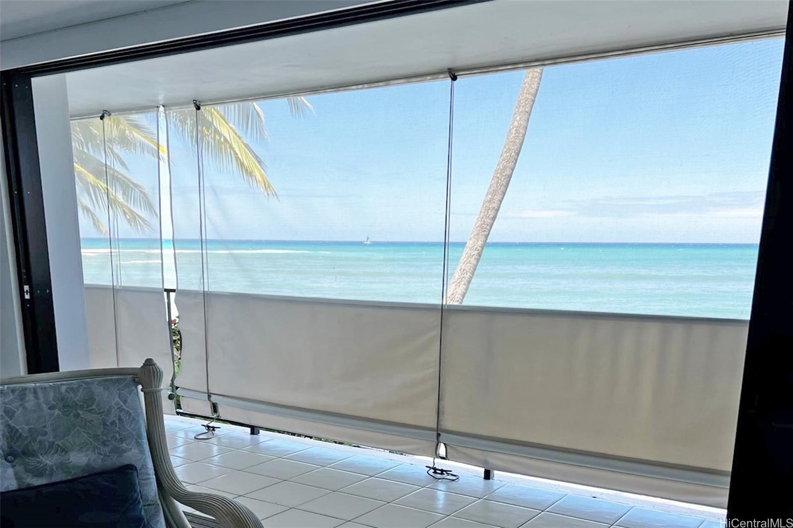 Any closer to the ocean and you'd be swimming! Enjoy oceanfront living in this light, bright one-bedroom condominium, ideally located in one of the Gold Coast's best spots. Sliding glass doors front the entirety of this second floor residence, creating a direct connection to the surf from all living spaces, including the bedroom. Step outside and you're in the water in under a minute, with easy access to Tongg's for great surf year-round. Windows on both the mauka and makai sides of this unique property capture trade winds to keep this condo cool. One deeded and assigned parking stall is included for your convenience, and 2987 Kalakaua is a well-managed building with very low maintenance fees. Perched on the slopes of iconic Diamond Head, the Gold Coast offers blend of tranquility and active living in a walkable, coastal neighborhood. Don't miss this opportunity to make the Pacific Ocean your backyard.