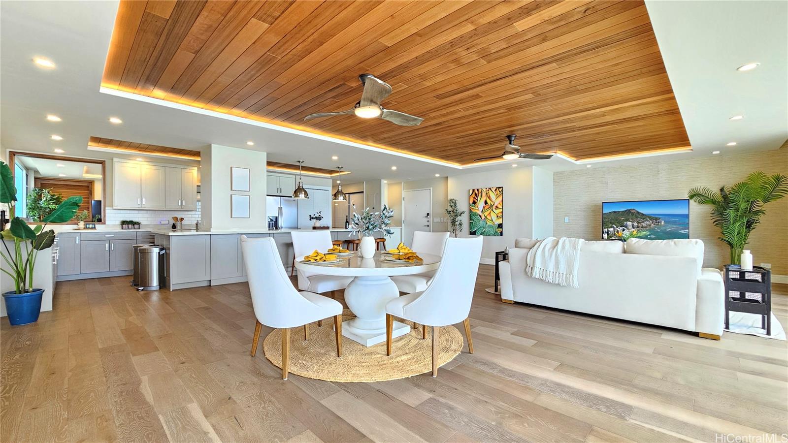 Experience refined oceanfront living on Honolulu’s Gold Coast. This exceptional 3-bedroom, 2-bath residence was fully remodeled in 2020 and showcases unobstructed 180° panoramic views of the Pacific Ocean, perfectly framed by swaying coconut palms. This expansive home features 1,984 sq. ft. of interior living space and a spacious 320 sq. ft. lanai, featuring an open-concept layout designed for elevated living and effortless entertaining. The expansive living room’s lanai doors open wide to capture endless ocean views, while the spacious lanai provides a front-row setting for sunsets, surf, and seasonal whale watching. Two bedrooms are positioned to enjoy beautiful Diamond Head views, creating a rare balance of ocean and mountain scenery. This boutique Fee Simple Gold Coast building offers just two units per floor and features see-through glass railings, secured entry, covered garage parking, and 14 guest parking stalls. Ideally located near Waikiki, Kapiolani Park, and Diamond Head, offering a private oceanfront lifestyle moments away from world-class beaches and dining.