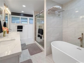 Nestled in highly desired Manoa Valley on a peaceful cul-de-sac, this meticulously renovated single-level 4 bedroom, 2 bathroom home is a true masterpiece of mid-century modern design. Boasting custom features throughout, this home offers a perfect blend of luxury and tranquility, with breathtaking views of serene Manoa Valley right from your expansive 7,700+ SF lot. As you step inside, you'll be greeted by the seamless fusion of classic charm and modern elegance. The open concept living and dining areas create a warm and inviting ambiance. The kitchen is a chef's delight, featuring top-of-the-line appliances, sleek cabinetry, quartz countertops, and a hide-away pantry. The home also features split AC throughout, ensuring year-round comfort, while the luxury finishes and attention to detail are evident in every corner. Conveniently located near Manoa marketplace, endless shopping + dining options, and world renowned beaches, this home provides the perfect balance of privacy and accessibility. Don't miss the chance to call this stunning mid-century modern gem your own.