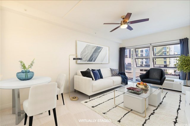 NEW LISTING! Rare gem! Enjoy the best of urban living in this beautifully maintained 1 bdrm/1 bath condo with 1 parking at 400 Keawe in highly desirable Kakaako. Features include high ceilings, fresh interior paint, new carpet, and an open kitchen with stainless steel appliances. Conveniently located just minutes from Downtown Honolulu, Ward Village, Ala Moana Shopping Center and steps from Salt at our Kakaako, with restaurants, shopping, and entertainment. Don’t miss this fantastic opportunity! One or more photos have been virtually staged.