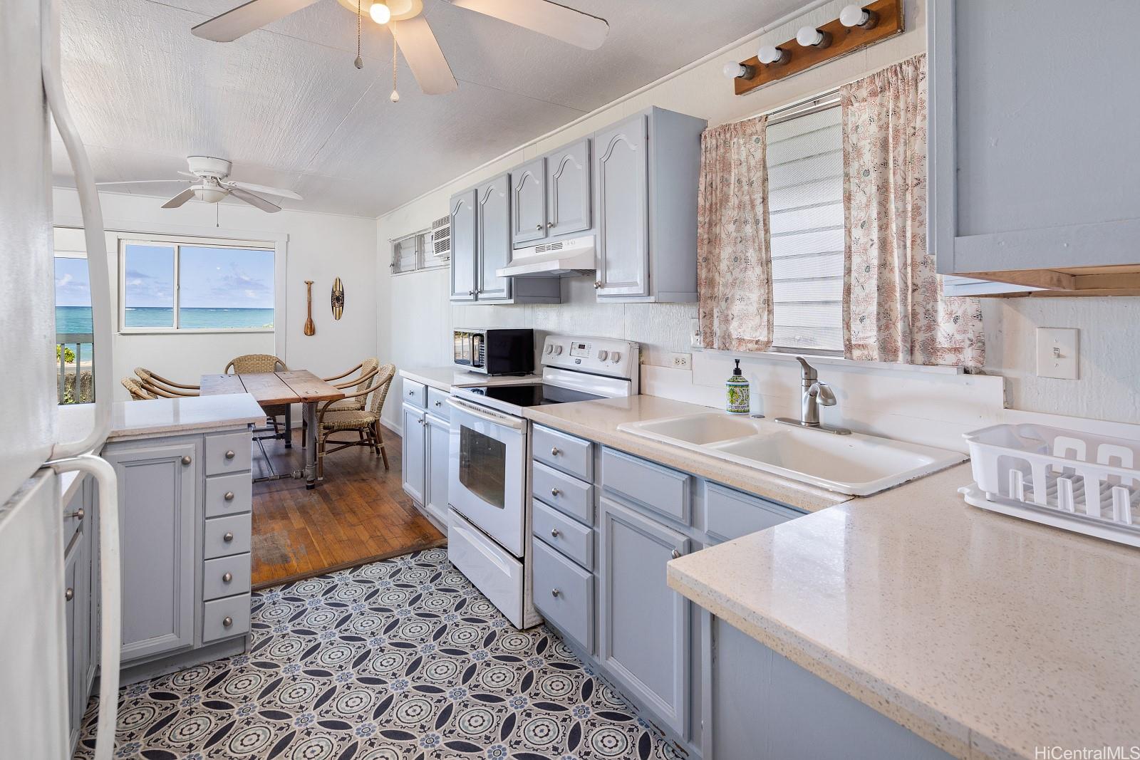 Nestled along the picturesque Northeast coast of Oahu, this stunning location offers a serene and idyllic seaside retreat. Boasting 3 bedrooms and 2 bathrooms, the charming home welcomes you with an open-concept living area, filled with natural light and breathtaking ocean views. The fully equipped kitchen was renovated in 2018 along with the rest of the house interior. Step outside to the private lanai and savor the cool ocean breeze as you unwind or entertain guests. With direct beach access across the street, enjoy swimming, snorkeling, and sunbathing just steps away from your door. Whether you're seeking a peaceful part-time getaway or a permanent residence, this property provides the ideal beachside haven. Immerse yourself in the beauty of Hauula, where you can explore pristine sandy beaches, go hiking in the nearby mountains, or simply relax in your own slice of paradise. Don't miss the opportunity to enjoy this coastal gem. Call now to schedule a showing and embrace a lifestyle of tranquility and serenity. This is a leasehold property with approximately 13 years left on the lease.