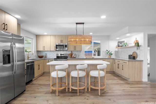 Completely remodeled single-level 4-bedroom, 2-bath home in the heart of Kailua’s beach town charm. Blending modern style with timeless Hawaiiana design, this home features a brand-new roof, windows, kitchen, and baths—making it the next best thing to buying new construction. Enjoy light-filled open living spaces, quality finishes, and thoughtful updates throughout. Located within walking distance to world-famous Kailua Beach, boutique shopping, and award-winning eateries, this home offers the perfect balance of island lifestyle and modern comfort.