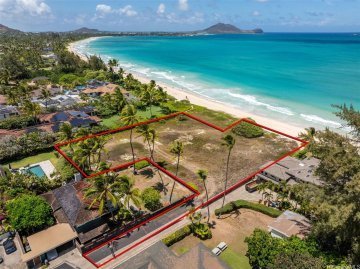 Welcome to this exceptional Kailua beachfront estate. This gated resort-like retreat is situated on nearly an acre of land fronting one of the most beautiful beaches in the world. With over 14,000 sq ft of sophisticated living space, the main residence is a masterpiece of design featuring a luxurious, expansive primary suite with panoramic ocean views, and an additional 9 bedrooms-each boasting a private en-suite bathroom, a spacious gym/recreation room, 2 additional full bathrooms, and 2 powder rooms. Designed to entertain in style, this private tropical oasis is complete with an outdoor pavilion and full wet bar just steps away from a pristine pool, spa, and wading pool all set within beautifully manicured landscaping. A charming, detached 2-bedroom, 2-bathroom guest quarters and three-car garage further complement this magnificent property. Just beyond your backyard, a white sandy beach and the sparkling blue Pacific Ocean, ideal for swimming, ocean sports, or peaceful strolls. Embrace this once-in-a-lifetime opportunity to own this prime oceanfront property.