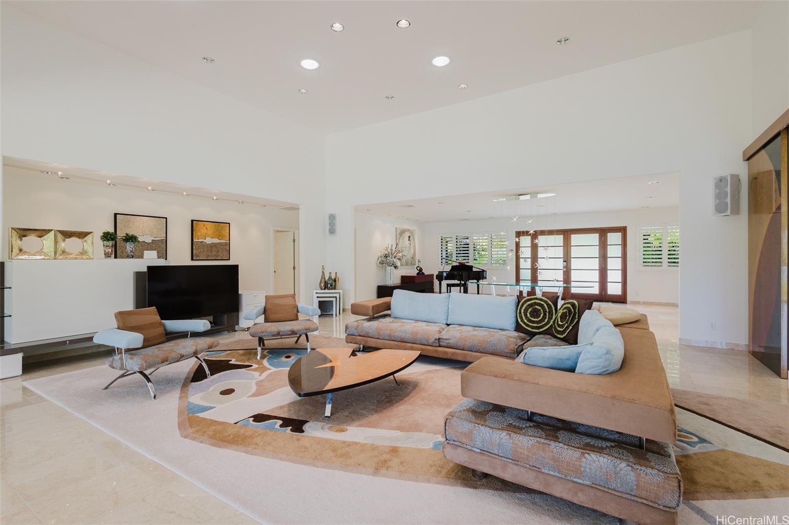 Back on Market. Waterfront residence located within a private, gated community, offering a setting defined by high ceilings and abundant natural light. The designer kitchen provides both style and functionality with water views. The property features a private dock with direct access suitable for activities such as kayaking or fishing. The home backs onto the historic Kanewai Fishpond and the Paiko Lagoon Wildlife Sanctuary, providing a unique waterfront environment. Enjoy a peaceful setting with views of the lagoon and surrounding natural landscape. Here, your daily soundtrack is the gentle rustle of native reeds and the soft call of the resident Hawaiian ducks (koloa maoli) gliding across the pond.A rare opportunity to own a waterfront property in a gated community with direct water access and proximity to protected natural areas.