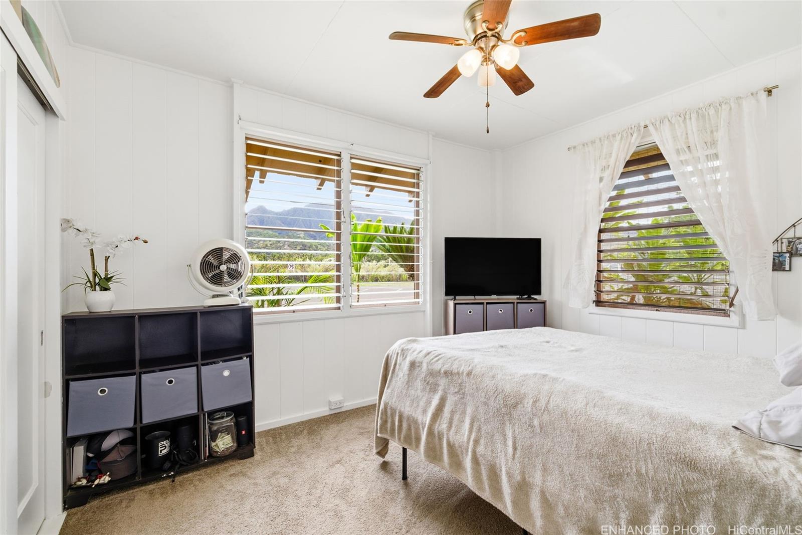 Wake up to serene views of Mount Kaala in this cozy, well kept country home. This original 3 bed 2 bath home offers beautiful hard wood floors, a spacious kitchen, and large living room. The open layout merges comfort and natural flow, while the covered lanai is the entertainer's dream with lighting, fans and an outdoor TV area, all while accenting a beautifully landscaped yard and gazebo. The property also features two driveways providing ample parking spaces for guests and occupants. Just minutes from Haleiwa Town, world-class beaches, and Kaukonahua road, this property blends everyday convenience with the serenity of North Shore living. Don’t miss this rare opportunity to own a home with one of Waialua’s best mountain views!