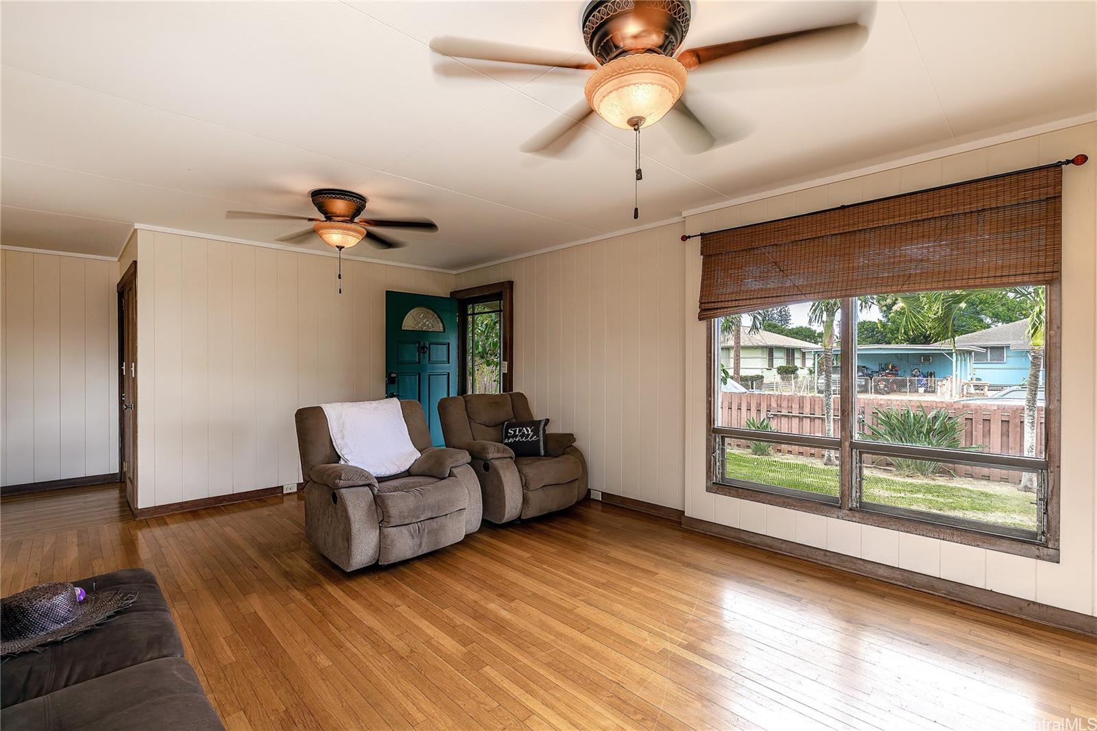 Come home to beautiful Waialua country only 38 minutes to Honolulu International Airport, minutes to Haleiwa Historic Town, and The Waialua Shopping Center, where you can shop, eat a variety of meals, get health care locally, and beat the traffic! Swim, snorkel, surf, foil, fish, golf, skydive, horse back ride, tour farms to name a few, then go home to this three bedroom one and a half bath charming home in it's authentic condition of original redwood walls in it's natural hues, good feel old Hawai'i charm and all original hardwood flooring blended with old World travertine marble, single hung windows and jalousies, window A/C's, original screen doors with wood frame, lovely lawns in the front, side and center between main dwelling and a studio cottage with full bath (tax records may differ). Two mature avocado trees, ready for picking by closing day. Covered carport, storage, full size washer and dryer, work shop, small green house, fenced yard, sliding driveway gate, beautiful areca, manila and bamboo palms, a must see property to appreciate the simple country lifestyle.