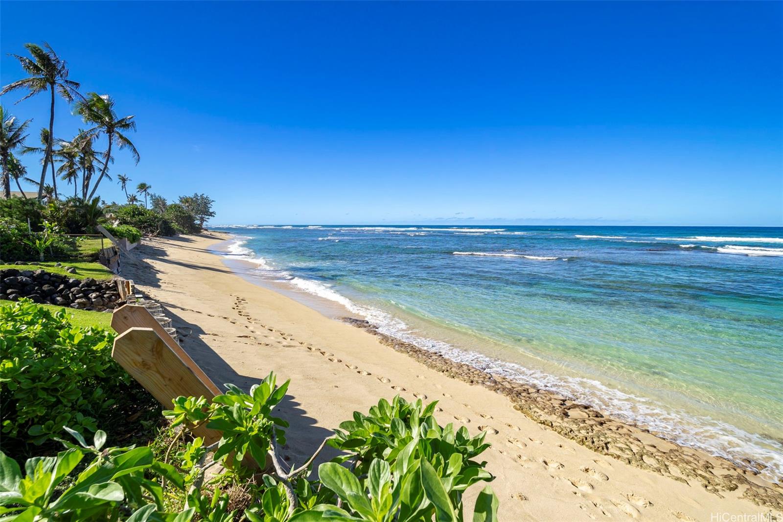 Priced over $100K below recent appraisal! This tastefully renovated, turnkey beachfront cottage awaits you on a highly coveted, serene stretch of Mokuleia. Situated on Crozier Drive, a peaceful, waterfront lane reminiscent of vintage Hawai'i and away from the North Shore’s traffic bottleneck, yet only an easy 45-minute drive to Honolulu International Airport. The charming 2-bed, 1-bath home is positioned perfectly between two uncrowded surf breaks, with a picturesque False Kamani tree framing the ocean view. The home has been thoughtfully remodeled and features 24 owned photovoltaic panels, two Tesla Powerwall batteries, and split AC for comfort beneath a couple years young roof. The sandy beach frontage where Green Sea Turtles frequently visit is perfect for long walks and majestic Humpback Whales breach offshore in the winter. The substantial offshore reef system creates a natural wave buffer, creating a tranquil, family-friendly sandy swimming cove out front even during the winter surf season. This is more than a home; it's a legacy—come experience the North Shore aloha that makes this location a favorite of those who truly know Oahu. Open House 2/21 from 1-4 & 2/22 from 2-5