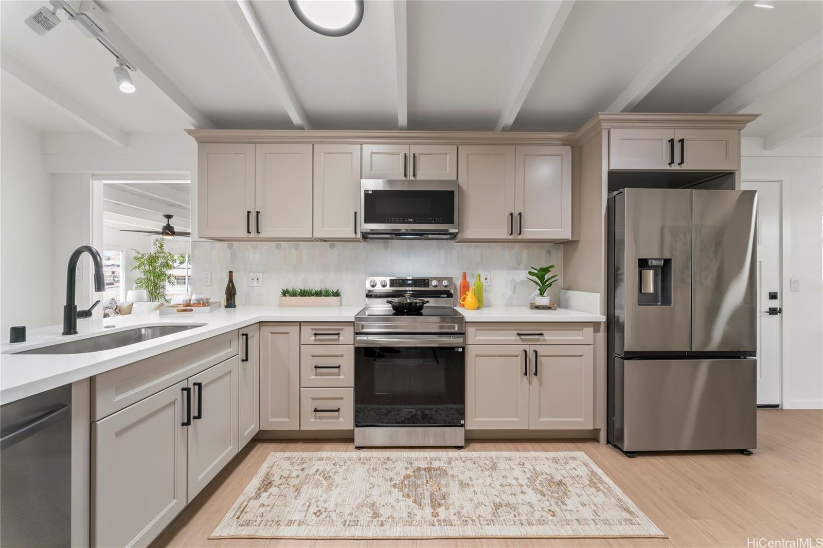 Welcome home to this completely renovated and charming 4-bedroom, 2-bathroom home nestled in the desirable Upper Pearl City neighborhood. This stunning property features a newly reimagined kitchen, complete with brand-new, energy-efficient appliances and beautifully installed flooring, ensuring both style and functionality. Situated on a generously sized 6,708 square foot lot, this home offers a comfortable 1,852 square feet of living area, providing ample space for comfortable living and entertaining, along with ample parking. Conveniently located in the heart of Pearl City, this home offers easy access to a wide array of local amenities, making daily life convenient. This property features a tranquil, fully fenced outdoor space, guaranteeing privacy and creating an inviting sanctuary. Please DO NOT enter the Property without the listing agent. Schedule your viewing today!