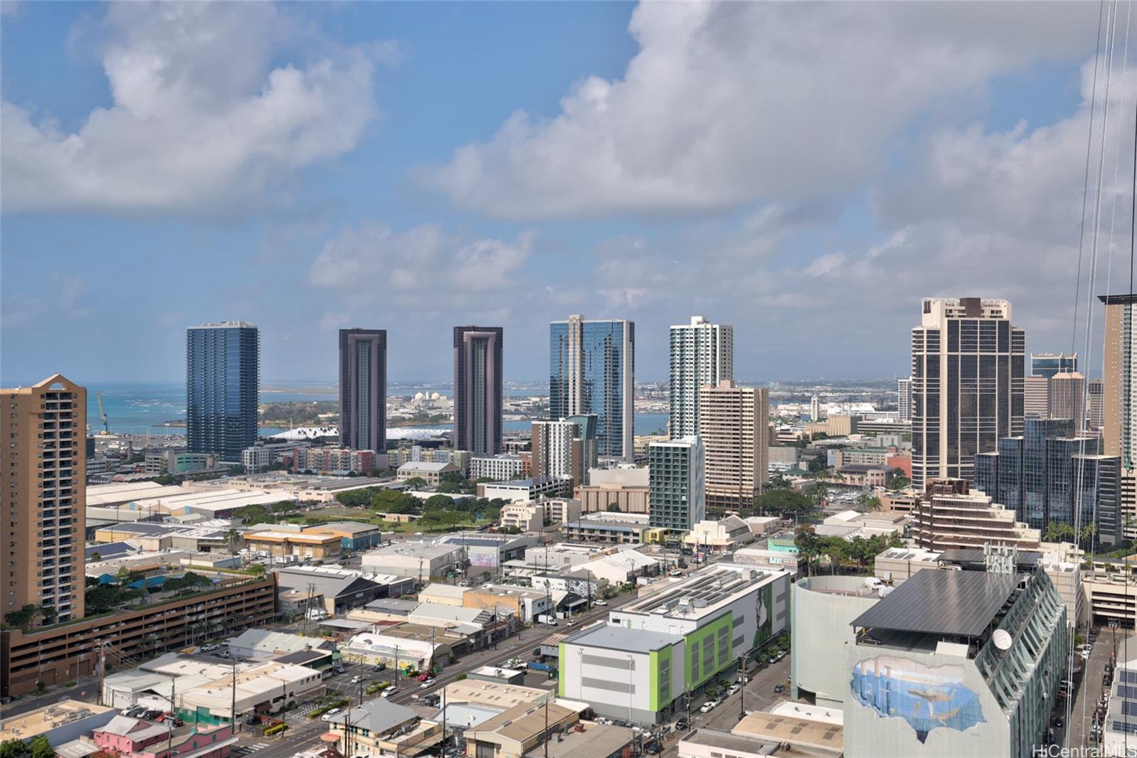 Indulge in refined island living in this premier corner residence ideally situated across from the iconic Neal S. Blaisdell Center. Perfectly positioned in the heart of the city, this sophisticated 2-bedroom, 2-bath home offers the ultimate blend of prestige, comfort, and convenience. Designed to capture breathtaking panoramic ocean and mountain views, this expansive corner unit is filled with natural light and refreshing cross-breezes. The thoughtfully designed layout offers both privacy and elegance, ideal for elevated everyday living or stylish entertaining. A rare offering in urban Honolulu, this residence includes three parking stalls and two generously sized storage rooms, providing exceptional flexibility and convenience. Residents enjoy resort-inspired amenities including a sparkling pool, fully equipped fitness center, and beautifully appointed party and gathering rooms — perfect for hosting memorable occasions. This is luxury city living at its finest — where location, views, and exclusivity come together in one extraordinary opportunity.