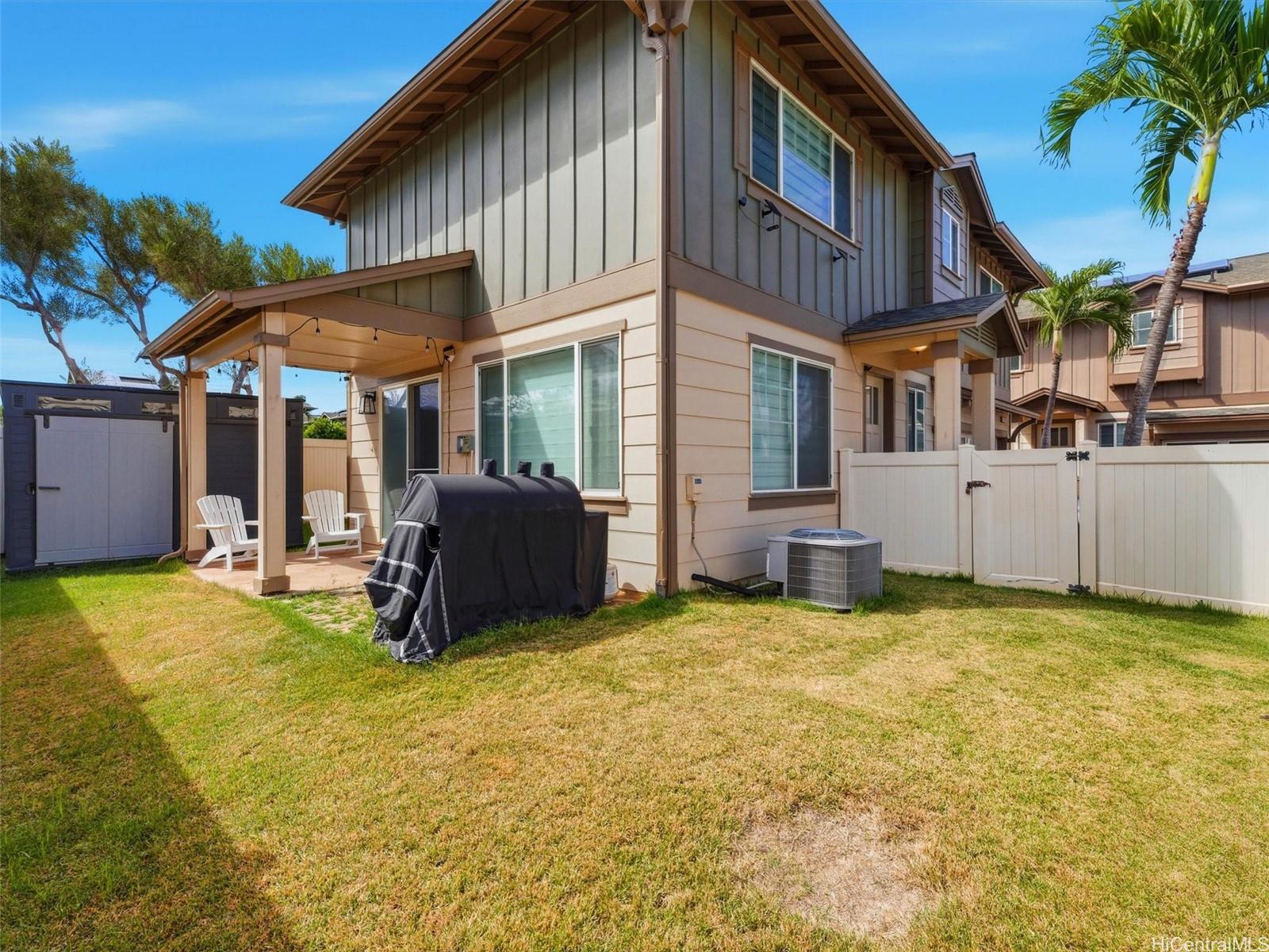 The Montecito and Tuscany community offers a picturesque and desirable location for aspiring homeowners. This particular property, featuring 3 bedrooms and 2.5 baths, rarely available detached corner unit. Beautifully remodeled in 2023 Living area, Kitchen and half bathroom. Solar Photovoltaic Installation with Battery Storage PV MODULE COUNT: 18 PV INVERTER COUNT: 18 # of PV Circuits: 2. The tranquil and peaceful ambiance of the community provides a welcome escape from the busyness of city life. Close proximity to various amenities. Residents will enjoy easy access to nearby shops, restaurants, and entertainment options, ensuring convenience and a vibrant lifestyle. Whether you enjoy hosting gatherings or desire a spacious environment to unwind, this home caters to your needs. Residents enjoy exclusive access to the community's private pool, covered cabanas for BBQs and gatherings, and pavilion areas. Perfectly positioned next to the Hawaii Prince Golf Club, walking distance to Laulani Village Shopping Center, a dog park, schools, and pristine beaches, with close access to Ka Makana Ali'i Mall, diverse dining, and West Oahu's vibrant amenities.