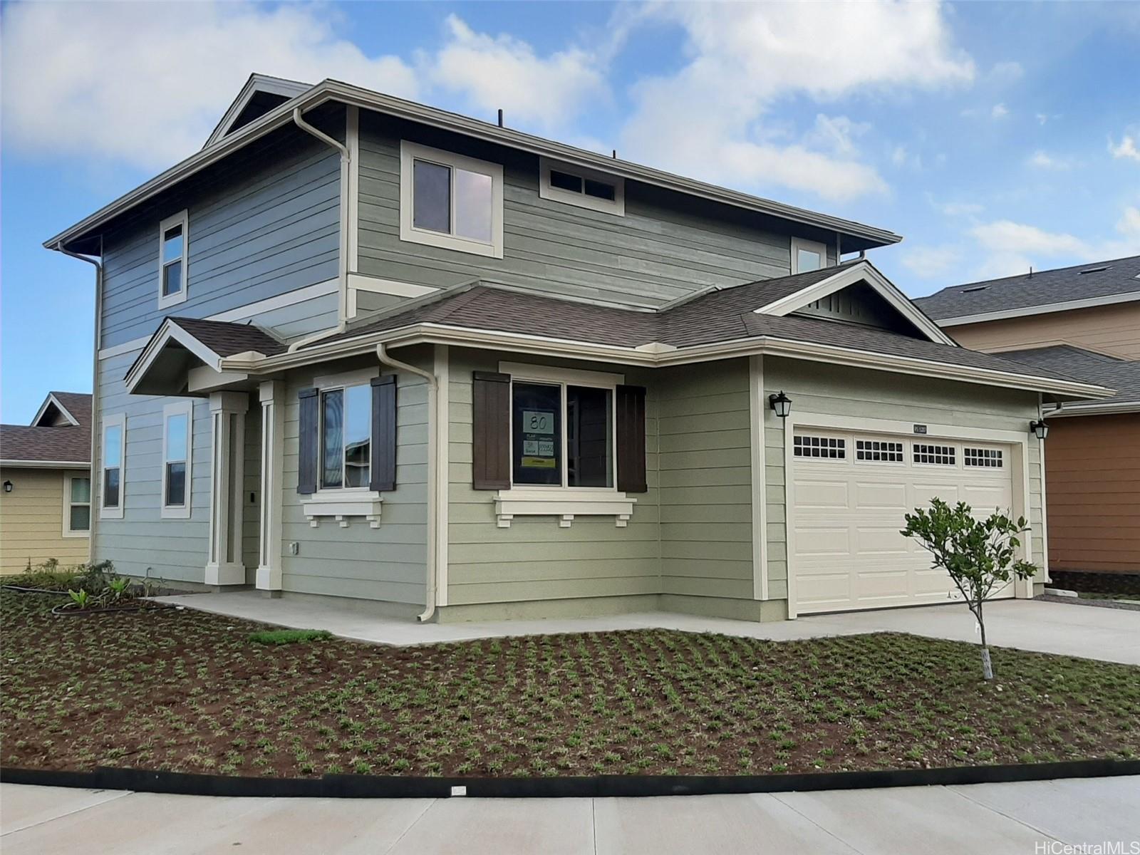 Welcome to this brand new Bloom/Plan 3. This lovely plan offers a spacious kitchen with a large vault stainless steel sink, stainless steel appliances including a gas range/oven, microwave and dishwasher and beautiful solid surface countertops. The living/dining area adjoins the 2-car garage and leads to the covered lanai and back yard. The master bedroom has his & her closets with mirrored wardrobe doors, master bath with walk-in shower and dual sinks. The secondary bedrooms are well proportioned with ample windows & mirrored wardrobe doors. The upstairs hallway offers a built-in tech desk and linen storage. A fully landscaped yard with irrigation system tops it off! The master planned community of Hoopili is close to all the conveniences of Kapolei and is the up and place to be!