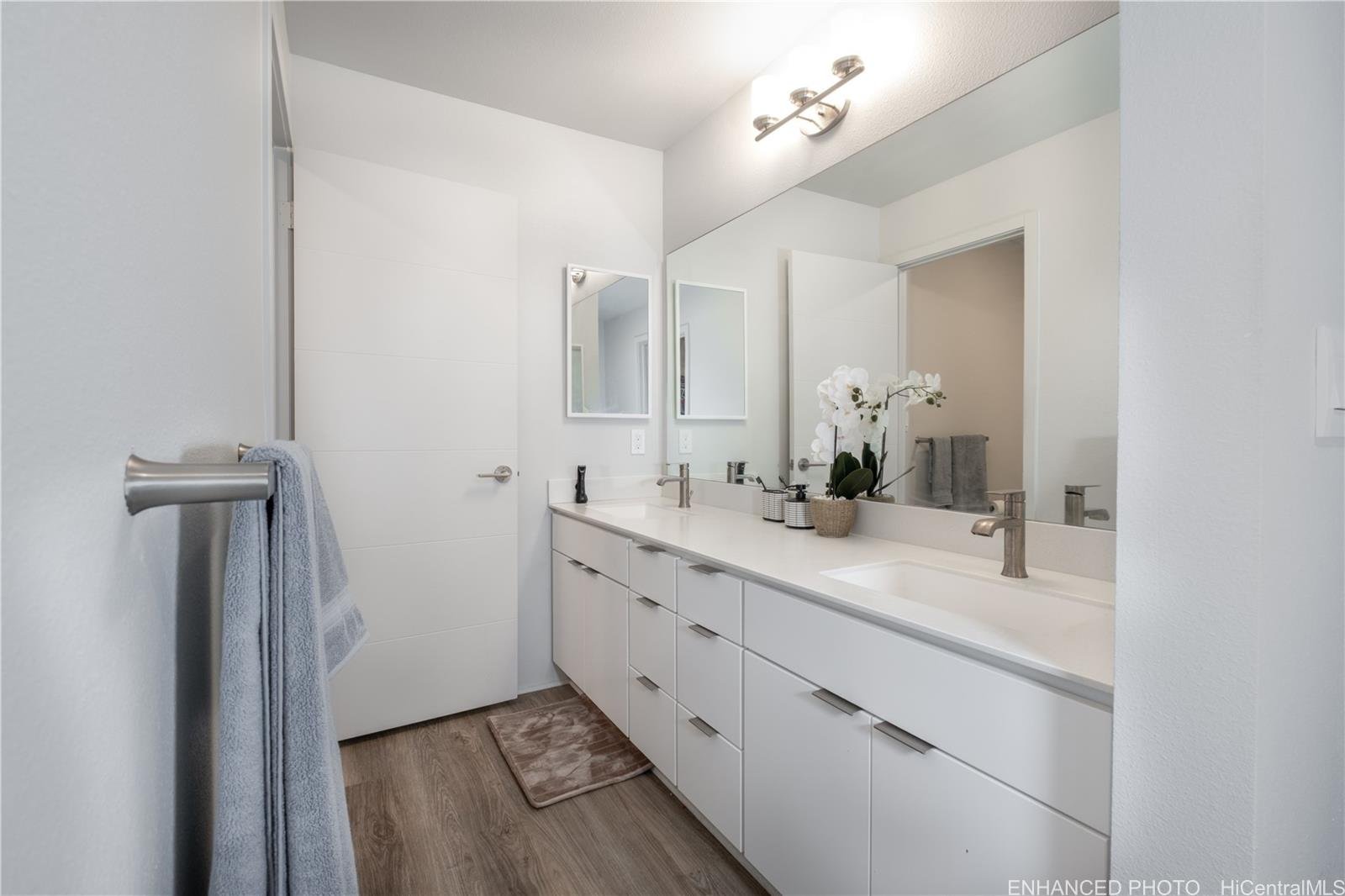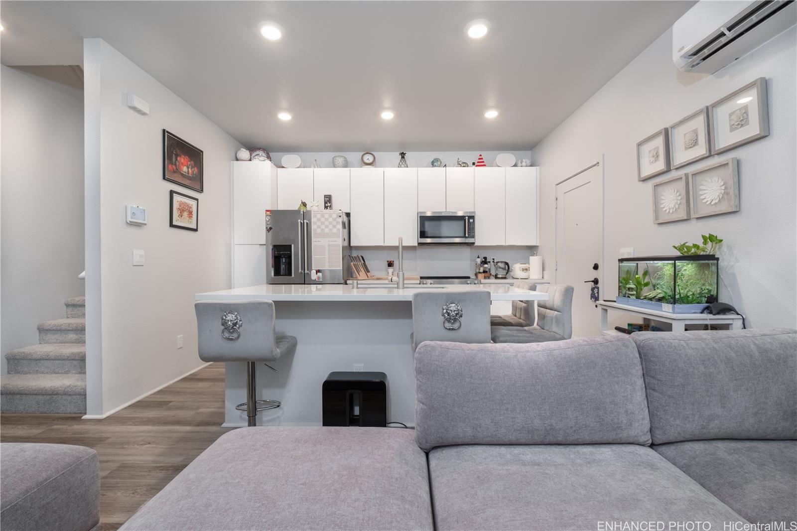 Welcome to this well-maintained 3-bedroom, 2.5-bath residence offering the perfect blend of comfort, style, and everyday functionality. The open-concept living and dining areas are filled with natural light, creating a bright and inviting space ideal for both relaxing and entertaining. The thoughtfully designed kitchen features quality KitchenAid appliances, generous counter space, and ample cabinetry — perfect for home chefs and gatherings alike. A convenient half-bath on the main level adds practicality for guests and daily living. Upstairs, you’ll find three bedrooms, including a spacious primary suite complete with a private ensuite bath and ample closet space. The home’s layout offers privacy and comfort for family or visiting guests. Additional highlights include a 2-car garage plus adjacent street parking for added convenience. Located near the Kroc Center Hawaii, enjoy easy access to recreational facilities, fitness programs, and community events. Shopping, dining, and entertainment are just minutes away at Ka Makana Ali'i, and the nearby rail line provides transportation accessibility for commuting across the island. Come schedule your showing today!