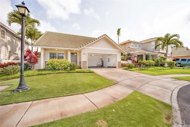 *PRICE REDUCTION and 5K CREDIT TO THE BUYER* Enjoy this secluded feeling neighborhood of Hu'elani unlike any other area in Ewa Beach. Master is on 1st floor, walk in closet, 2.5 bathrooms, central AC, 2 car garage, covered patio, spacious living/dining room/kitchen w/island, sprinkler system front and backyard, and more. Hu'elani is a beautiful gated community featuring resort-style amenities with one of the best valued HOA amounts that cover the cost of water, sewer, front yard maintenance, roof, exterior painting, regular termite treatment, hazard & hurricane insurance, plus pool, hot tub, full gym room & club house. No need to save and budget for the exterior maintenance costs that come with owning a single family home and HOA ensures the entire neighborhood maintains the clean look it's known for. Plenty of guest parking available. This truly is a gem in a treasure chest of homes ready for the next owner to enjoy for years to come! 5 min drive to Laulani Valley Shopping Center with Safeway, City Mill, restaurants and more!