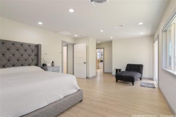 Welcome home to Paradise in Paradise! Resort-style living for your exclusive use. Enjoy an outdoor oasis customized by pool designer for high-end hotels and luxury high-rises...all to yourself. This 5 bedroom executive home features a large pool with wading-area and waterfall, hot-tub with trellis and outdoor TV. No expense was spared in upgrading this home. Spectacularly landscaped yard and terrace features fruiting plants, sprinkler systems, accent lighting and your own putting-green. Incredible outdoor kitchen with grills, griddle, burners, Big Green Egg and smoker plus a bar complete with self-pour tap wall.This property boasts a range of luxurious amenities including plantation shutters, 21 owned PV panels, top-of-the-line KitchenAid suite, split AC throughout, LVP flooring and stain blocking carpeting. Covered lanai just outside of the dining room adds to your indoor/outdoor enjoyment as does the wrap around 2nd floor lanai. Primary bedroom features a massive walk-in closet and an incredible bathroom with deep soaking jetted tub and multiple shower heads. All this just minutes away from fantastic dining, shopping and entertainment.This home is truly one of a kind.