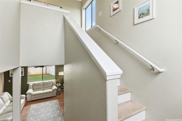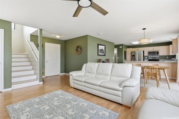 If you’re craving peace, privacy, and plenty of room to move, this home is just the ticket! Set in the beautiful Royal Kunia community, this two-story home offers a rare walk-around lot, being only one out of a few homes in this community development. Imagine entertaining your guests and loved ones with a spacious second level loft, which is also one-of a kind and unique! Upstairs, you’ll find 3 bedrooms, a second level loft, and 2 bathrooms. The home’s spacious primary suite includes an ensuite with dual vanities and a large walk-in closet. Downstairs, you have 1 bedroom that can accommodate guests and loved ones or be fitted out to be your private office. Outside, the property is located on a corner and rim lot, which gives you plenty of space and privacy to relax and enjoy your spacious back yard. To top it all off, the home is situated in a cul-de-sac and is conveniently located to shopping centers, restaurants, and easy access to H-1 freeway. If you are looking for a cozy home, with space for the entire ohana in a good location, this is it!