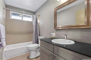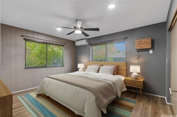 Tucked at the end of a quiet cul-de-sac in Royal Kunia, this 4-bedroom, 2.5-bath rim lot home offers privacy and open mountain views with no rear neighbors. Inside, the home has been well maintained and thoughtfully updated, creating a clean, move-in-ready space. The flexible four-bedroom layout provides room for guests, a home office, or growing households, and the 2.5-bath floor plan keeps daily life efficient and functional. The fully fenced backyard captures the breeze and offers space to relax or entertain. Located in the Royal Kunia community near parks, recreation areas, and everyday conveniences, this home combines comfort, privacy, and a practical layout in a desirable setting.