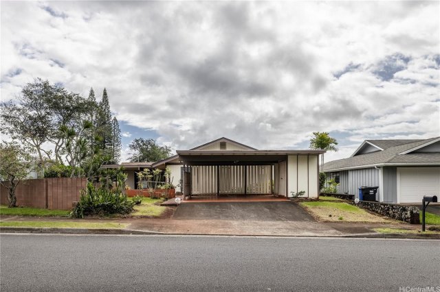Located in desirable Mililani Town, this ideal and highly preferred single-level home with open concept offers comfort, space, and opportunity. Featuring a convenient 2-car carport, the home boasts a spacious layout with both a generous living room and separate family room — providing flexible space for relaxing, entertaining, or everyday living.Step outside to a large covered patio, perfect for gatherings, weekend barbecues, or simply enjoying the island breeze. Situated directly across from a park, the location offers added privacy, greenery, and easy access to outdoor recreation.This home is ready for your personal touch. Bring your paint brush and choose your own flooring to transform this well-built property into the home of your dreams. A fantastic opportunity to customize and build equity in one of Central Oahu’s most sought-after communities.
