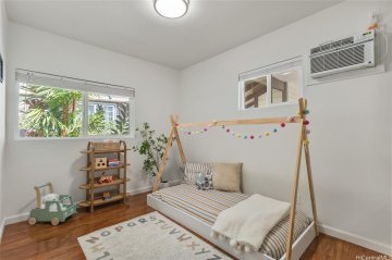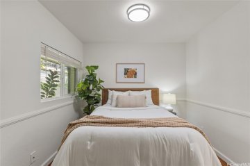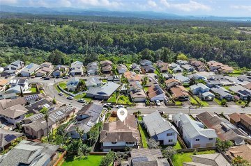 If you're been searching for your dream home, search no longer! Presenting a fully renovated, designer home with 4 beds, 2 baths, plus bonus den/office, nestled in the secluded sub-association, Cluster 38, part of Mililani Town. Entertain with your large open concept kitchen, and show off all the features from the new appliances, fashion light fixtures, wall to wall kitchen counter, and brand new showers. 3 bedrooms and a bath located on the ground floor, with the primary taking the entire top floor. LVP flooring throughout and split ACs upstairs and in living room. 27 owned PV panels are on top the brand new roof. If the yard is more your vibe, the large lot comes with many fruit trees including, avocado, strawberry guava, starfruit, jabong (pomelo), calamansi, and even coffee. The pictures don't do it justice and you must see it for yourself! Cluster 38 is located on the South side of Mililani Town. The extra fee is this sub-association fee which includes maintenance of private road. House is located at the end of a cul-de-sac with back against the Mililani Agricultural Park.