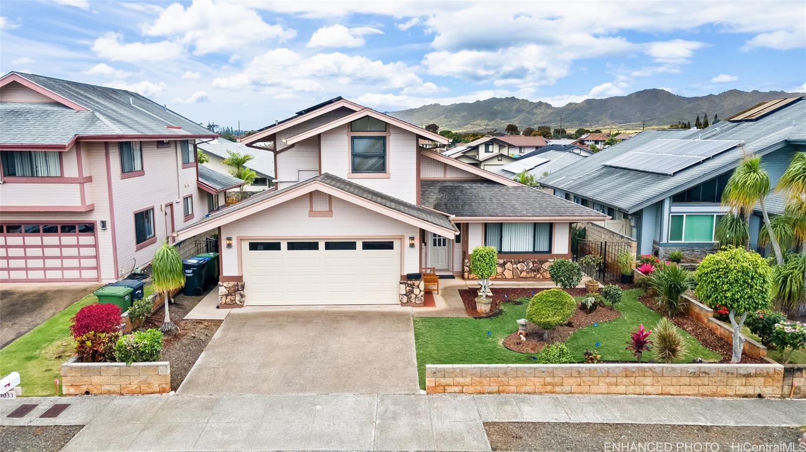 Nestled in the desirable Mililani Mauka community, this meticulously maintained 3-bedroom, 2.5-bath home offers 1,875 sq. ft. of living space on a 5,300 sq. ft. lot. Enjoy outdoor living with a covered lanai and private backyard, perfect for relaxing or entertaining. Features include 22 owned photovoltaic panels with net metering, split AC units, fresh interior paint, and new luxury vinyl flooring and carpeting. The thoughtful layout includes a first-floor bedroom and full bath, ideal for guests or multi-generational living. With easy access to top-rated schools, parks, shopping, and dining, this home combines comfort, efficiency, and convenience.
