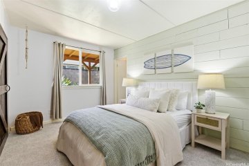Extensively renovated comfortable family home in quiet cul-de-sac. New kitchen cabinet w/Quartz counter top, new sink & faucet. New bathroom vanity cabinets w/ new faucet and Quartz counter top. New vinyl wood flooring on ground floor and new carpet on 2nd floor. New painting. Master bedroom and bath on ground floor. 2nd bedroom is also on ground floor. 2 bedroom & 1 bath on 2nd floor. Kitchen w/ large dining area. Spacious living room w/ high ceiling. Completely walled. 2 car garage plus more cars can park on driveway. The house sits at end of cul-de-sac. Nice & flat front, side and back yards. Enjoy Mililani Rec center, shopping centers, restaurants and a golf course.