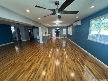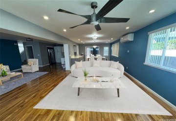 Welcome home to this rarely available 4-bedroom, 4-bathroom gem in the highly sought-after Mililani Mauka. Experience Hawaii living at its finest in this beautiful residence, situated on a tranquil 5,200 sq ft lot. The front yard and charming curb appeal set the tone for what awaits inside. The large rear patio and backyard offer ample space for outdoor enjoyment. Step inside to find a newly renovated kitchen featuring a bright, open concept kitchen with a stunning waterfall-edge island, and fresh interior paint throughout. The home also boasts all-new luxury vinyl flooring, adding to its modern appeal.