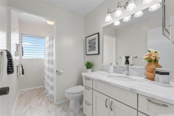 Welcome to this beautiful multigenerational home in the heart of Pearl City!This 5 bedroom home offers 2 separate living spaces. The main level of the home features 2 bedrooms plus a den, 2.5 baths, a very spacious extension, and a large extended covered patio - perfect for social gatherings. The 2nd level of the home has its own private entrance and features 3 bedrooms and 2 baths. 37 Owned PV panels help offset energy costs, while split air conditioning and new paint highlight the home’s recent upgrades. And the tropical landscaped yard with lemon and tangerine trees help create a lush, tranquil retreat.It doesn’t get any more central than Pearl City living, with plenty of options for schools, parks, shopping, and eateries. Whether you’re shopping as an investor or looking to live as one big family, come see all that this home has to offer TODAY!