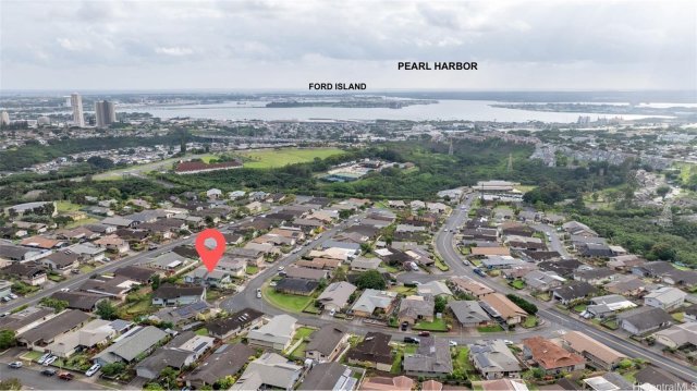 E Komo Mai to NEWTOWN ESTATES. Centrally located and minutes away from Sams, Walmart, Golf Courses, parks, schools, & easy freeway access. This home boasts OCEAN, PEARL HARBOR, MAKAKILO, MOUNT KA?ALA mountain range + city views. Move-in-ready 5 bed 3 bath home features; 3 living rooms, 4+ vehicle parking, plenty of storage below home. Don?t forget about the fenced yard w/ a gorgeous retaining rock wall in the back AND sides. RENTAL POTENTIAL awaits with a full living unit on the ground floor including a living room, bedroom, full bath, area for a wet bar! Buyers can let their creativity run wild with remodeling ideas for this generous floor plan! Relish in expansive living areas including; 3 LIVING ROOMS, a FOYER for welcoming guests and even a separate laundry room. Entertain guests while enjoying beautiful sunsets under a covered lanai. Splendor in a spacious backyard w/ a terraced garden yielding plenty of opportunity for growing fruit trees and all plants. there is plenty of space on ALL sides of the house for BBQing, gatherings, fire pit, outdoor games, seating, and all sorts of hobby work. Association includes: swimming pool, rec room, weight room.