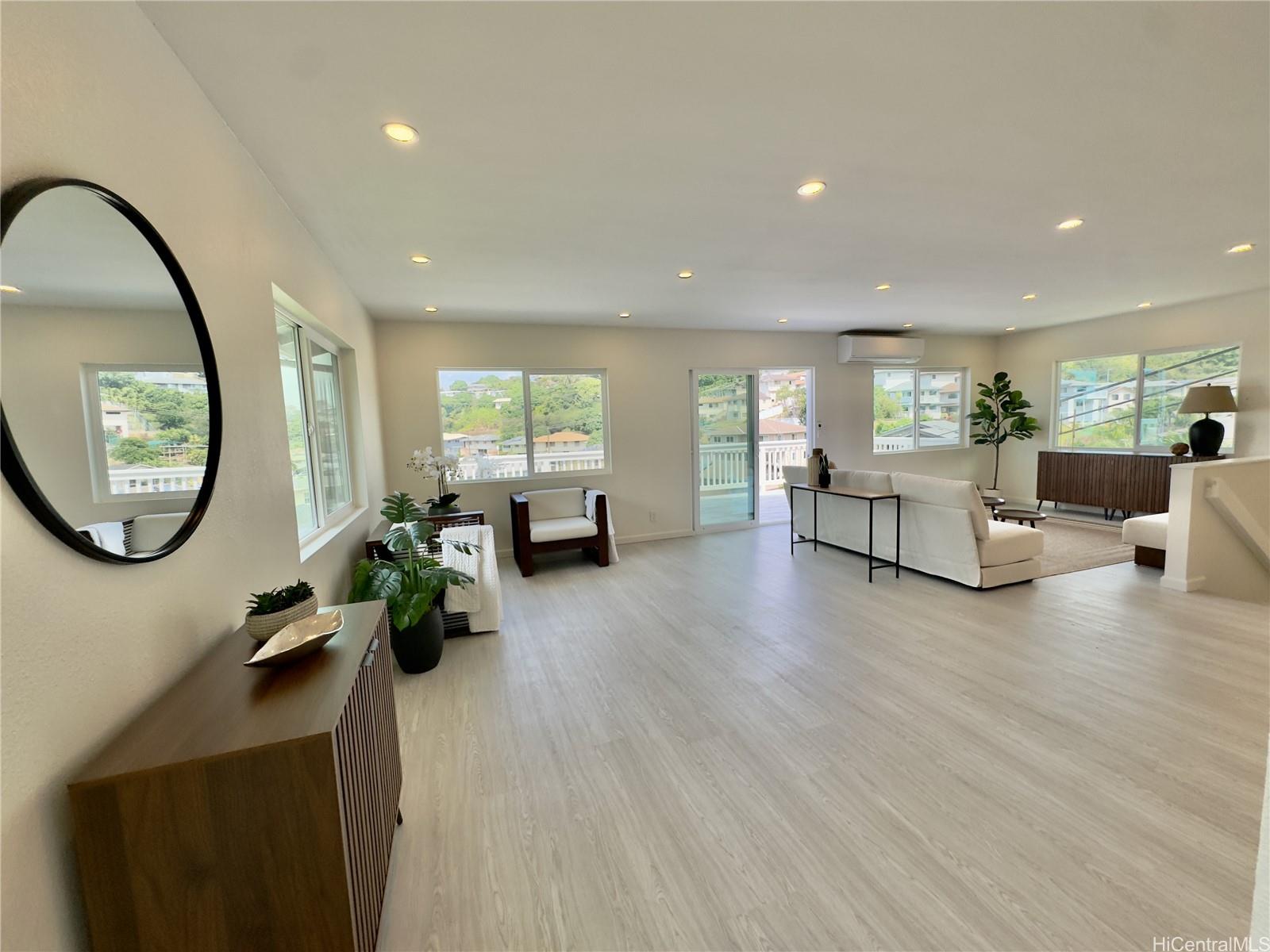 Welcome to this beautiful residence in desirable Aiea Heights! Perch on top along the perimeter lot with breathtaking Views! Ample yard space with fully fence gates and it's custom finishes and high quality upgrades throughout the home. This residence truly offers living at it finest. The open spacious living area leads out to the expansive deck for hosting a gathering and your enjoyment of the amazing surrounding views. Step inside the home to discovered the very large living space on the main level. A very spacious primary bathroom located on the middle level along with 2 other bedrooms. The lower level features a 1 bedroom, 1 bath separate entrance. This home offer endless possibilities!!!