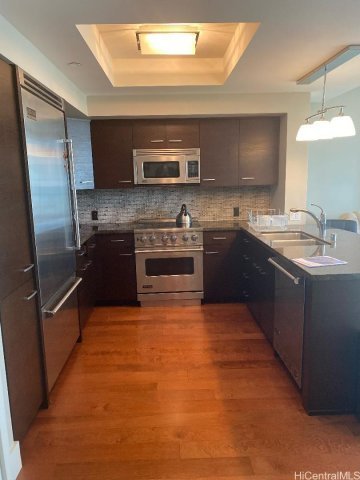 Welcome home to this immaculate 2 bedroom, 2 bath unit with central air conditioning, hardwood flooring, Viking stainless steel appliances and granite counter tops. Take in panoramic vistas from Punchbowl to Manoa Valley and beyond from your spacious covered lanai. Great opportunity to own in this luxury building at the top of Waikiki with elegant lobby, resort-like amenities and a friendly, professional management staff. With a walk score of 94 and a transit score of 74, the Allure Waikiki is the oasis in the heart of Honolulu.