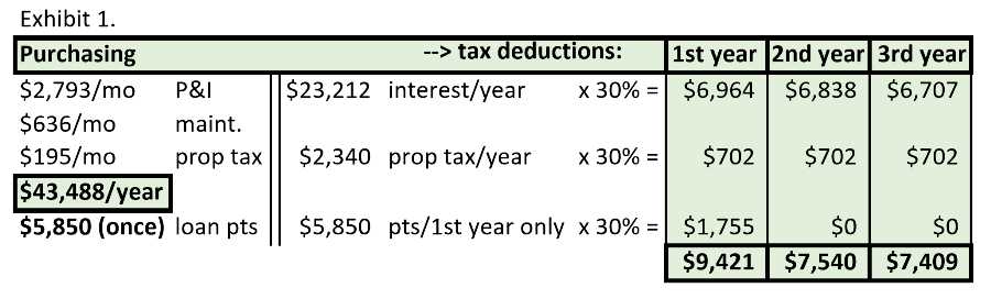 Exhibit 1 この例では1年目(12か月間)で9,421ドル、2年目には7,540ドルの節税ができることがわかります。本稿の狙いはつい見落としがちな節税ポイントを明確にすることです。本サイト別ページに掲載している不動産による財産構築では、オアフ島不動産の価格上昇率を年4.5%として別の角度から長期的財務管理について賃貸する場合と比較しながら解説しています。