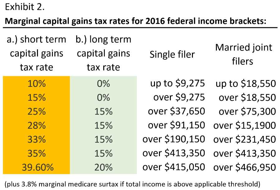 Exhibit 2では、2016年所得額別キャピタルゲイン税課税率をa.)短期税率(一般所得税率と同率)b.)長期税率で示しています。