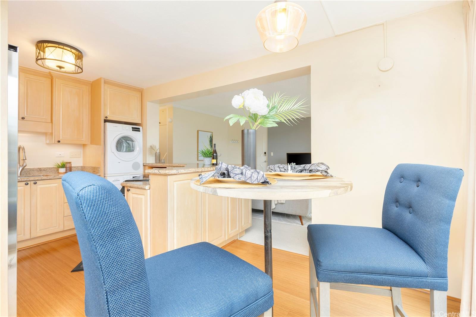 Welcome home to this rarely available and well-maintained 2-bedroom 1-bath 1-parking condo with WASHER/DRYER IN UNIT at the Consulate in Makiki! This rarely available unit has it all, including: an enclosed lanai for an additional 100sf of living space, updated windows (no jalousies), a tankless water heater, and granite kitchen countertops! The Consulate is an exceptionally managed building with all pipes replaced (2014), elevator updated (2020), railings and spalling (2025); all paid through the current maintenance fees. Any special assessment has been paid in full by the current owners. Don't forget to take a swim in the salt water pool! Conveniently located close to a park, neighborhood schools, public transportation, shops, and the University of Hawaii! First open house on Sunday, November 9, from 2-5pm. Call your agent for a showing today!