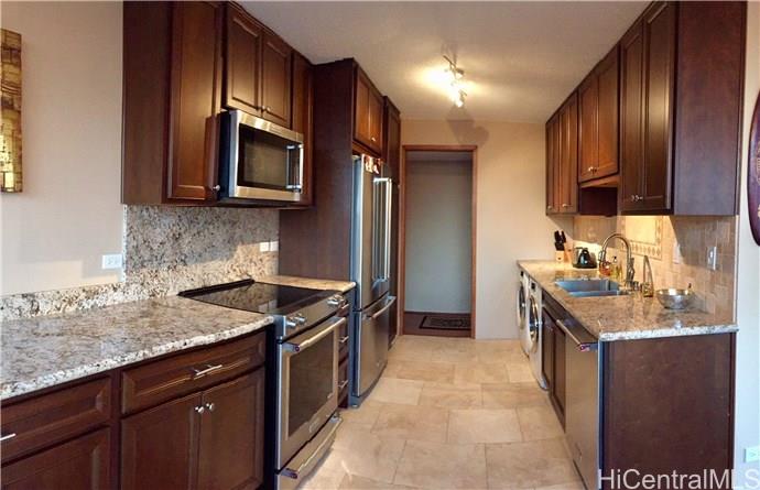 BEAUTIFULLY UPGRADED WITH WONDERFUL ATTENTION TO DETAIL, SPACIOUS CORNER UNIT 2/2/2. SOLID WOOD FLOORING, TRAVERTINE, WITH BRAND NEW CARPETING IN BOTH BEDROOMS. CEILING FANS IN EACH ROOM. LARGE WRAP AROUND LANAI WITH AMAZING PANORAMIC VIEWS OF MANOA VALLEY, CITY TO DIAMOND HEAD. FULLY UPGRADED KITCHEN INCLUDING GRANITE COUNTER TOPS, HIGH END KITCHENAID STAINLESS STEEL APPLIANCES, WINE COOLER AND LOTS OF CABINET SPACE. BRAND NEW WASHER/DRYER AND DISHWASHER. LARGE AND CONVENIENT STORAGE IN HALLWAY OUTSIDE UNIT NEXT TO FRONT DOOR. 24 HOUR SECURITY AND GREAT MANAGEMENT WITH PLENTY OF GUEST PARKING, SAUNA, SWIMMING POOL, AND CHILDREN'S POOL. EXCELLENT LOCATION CLOSE TO RESTAURANTS, SHOPS, UH CAMPUS AND BUS STOPS. DON'T MISS OUT ON THIS QUALITY APARTMENT.