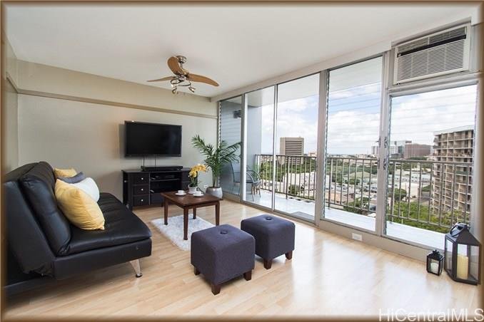 NEW LISTING! Beautifully upgraded 2bed/ 2bath unit with highly desirable 2 covered parking. This move-in ready condo features open concept living area and kitchen, spa like bathrooms, lanai, custom cabinets, with laminate/ceramic flooring, washer/dryer in unit. Secured, gated, pet-friendly building with a pool. Close to everything town has to offer, museums, hospitals, shopping, freeways. This is a great opportunity. Don’t miss this one! To be sold AS IS. TV excluded.