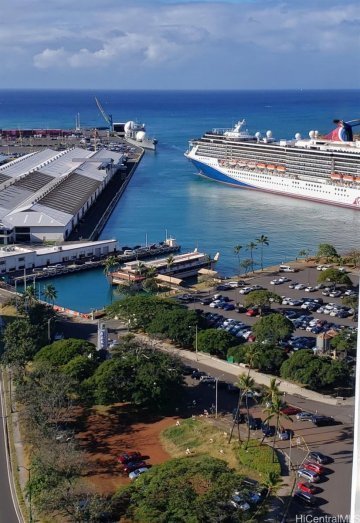 Convenient coastal living in the vibrant heart of downtown Honolulu! Feel at home in this fully renovated 2 bed, 2 bath sanctuary, over $120k in upgrades, spanning 1,031 sqft of living space, showcasing breathtaking sunsets, ocean views, and the presence of cruise ships gliding through the water. Every detail of this residence has been refined, from the chic and functional kitchen adorned with quartz countertops and top-of-the-line appliances to the rejuvenating bathrooms and updated electrical/AC systems. The seamless flow of the open floor plan and abundant natural light create an inviting ambiance, perfect for entertaining or simply relishing in life’s moments. Step onto the expansive 149 sqft lanai to seamlessly merge indoor comfort with the refreshing outdoor breeze. Convenient parking space, and storage locker included. Harbor Square offers an array of amenities including a swimming pool, BBQ area, and a recreational deck, ensuring year-round enjoyment. Plus, the HOA includes electricity! This residence offers unparalleled accessibility to workplaces, shops, eateries, and the pristine shores of Ala Moana Beach Park.