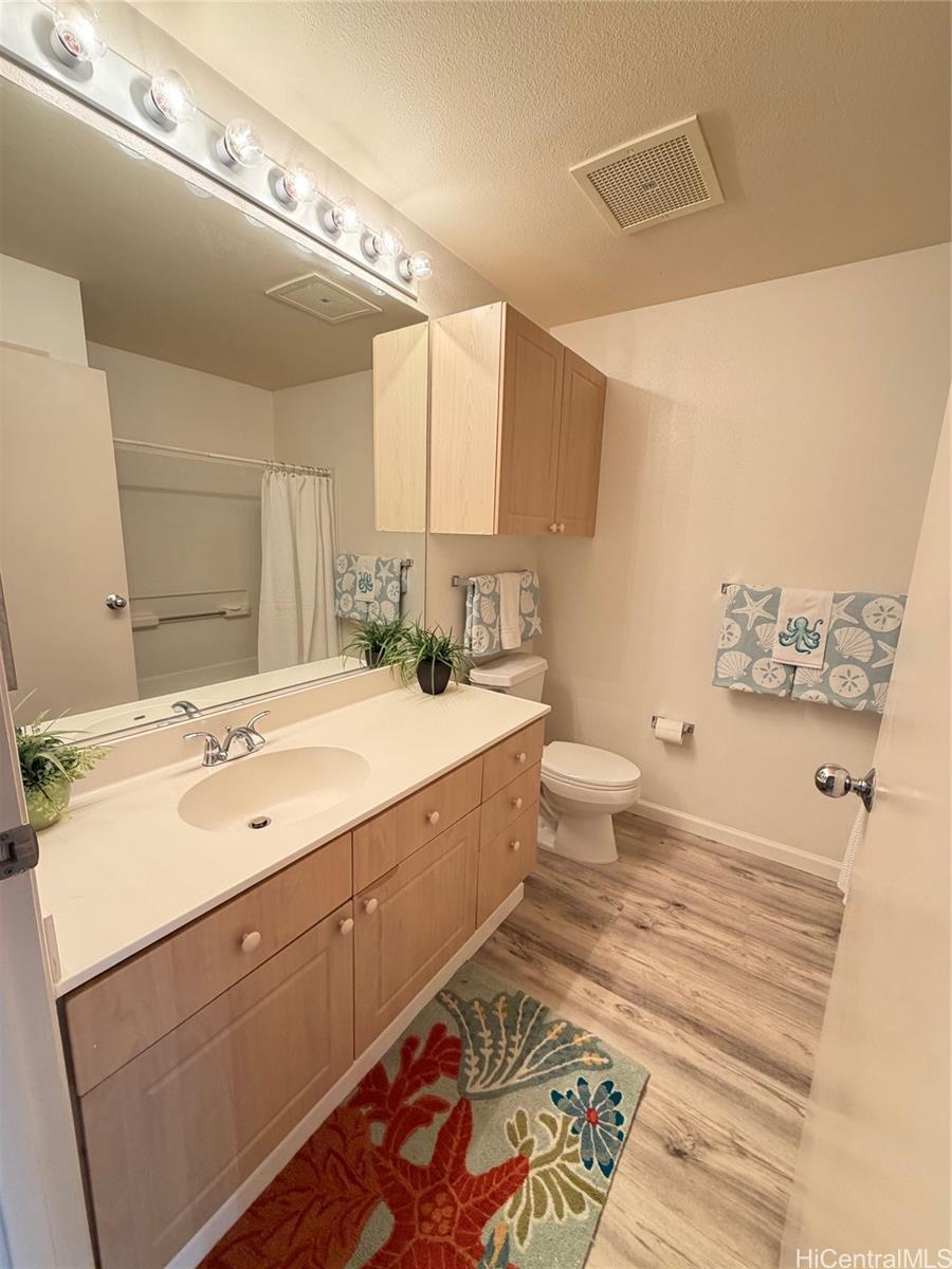 Rarely available private ground floor 2 bedroom 2 bath with 2 parking 1 covered and 1 open fronting unit. Two courtyards front and back, with no back neighbors. Upgrades include new paint, vinyl plank flooring throughout, and new bathroom faucets. Close to shopping, eateries, entertainment, healthcare, schools and easy access to freeways. Residents has access to Mililani Town Association pools and 7 recreational centers and activities.
