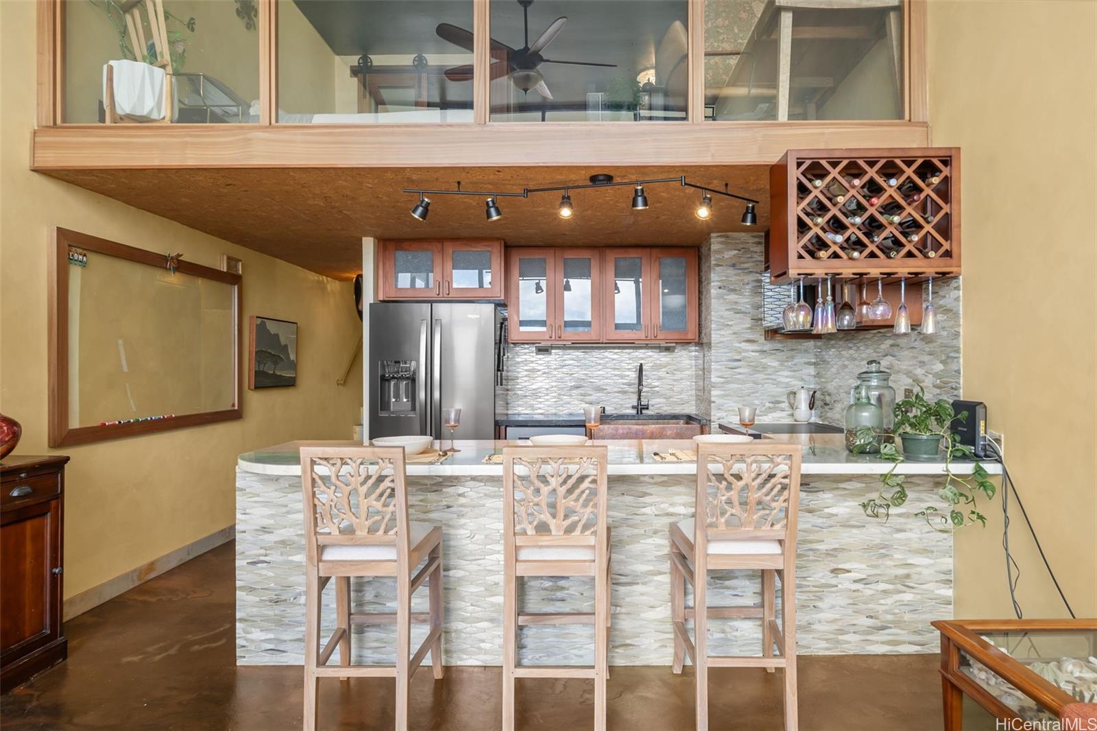 Welcome to one of the most luxurious apartments in Ka Hale Moi. Unit 502 has been meticulously renovated with custom touches throughout; this unit is a rare gem, come see it with your own eyes.15-feet floor-to-ceiling windows provide maximum natural light and viewing pleasure of the unbeatable, unobstructed ocean views, sunset and nighttime city lights. Its generously sized lanai makes for added space to entertain & enjoy morning coffee and/or sunset cocktails. Over 120k tasteful renovations include custom, high quality Sapele Wood glass space railing in the primary bedroom overlooks the living area and takes full advantage of the view; acid stain concrete floor brings another unique character to this home; fully updated plumbing system of this unit, brand-new stainless-steel appliances and more. Conveniently located minutes from Queens and Straub Hospitals, Blaisdell Center, Kaka'ako restaurants, Honolulu Art Museum and convenient H-1 access going East and West. A recreation deck and swimming pool are provided for the exclusive use of residents and their guests. Great 2.25% VA Assumable Loan to VA buyers with entitlement, 461K balance. 100% insured building, pet friendly also.