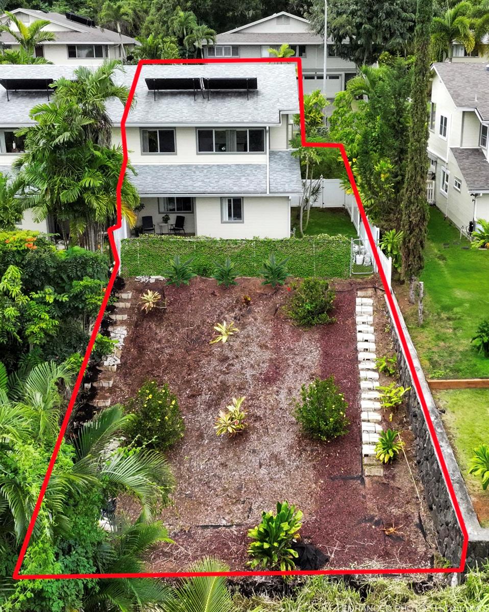AMAZING NEW PRICE - Motivated seller relocated! Welcome to Kaopa Park Place! This serene duplex home is nestled at the end of a cul-de-sac in Kailua Bluffs, offering tranquil mountain views & lush surroundings. Relish the privacy of this 4,735 SF rim lot - no back neighbors. Built in 1991, this pet-friendly community features underground utilities, sidewalks, tree-lined streets, and 100% hurricane insurance. Savor tropical breezes and natural light through large windows that bring the outdoors in. The split-level layout features an open living and dining area with a galley kitchen & tiled entry on the main level. Bedrooms & bathrooms are located downstairs for added privacy. Enjoy newer flooring in the living room and stairs, 2-car enclosed garage with storage cabinets and epoxy flooring, stainless steel appliances, new dishwasher, attic fan, ample under-house storage, and solar water heating system. Gardeners will love this rarely available spacious back yard with a tiled lanai—perfect for a private oasis or relaxing retreat. Located minutes from Enchanted Lake Shopping Center, Kalanianaole Hwy, Kailua Town, beautiful beaches, and a variety of shops & dining options.