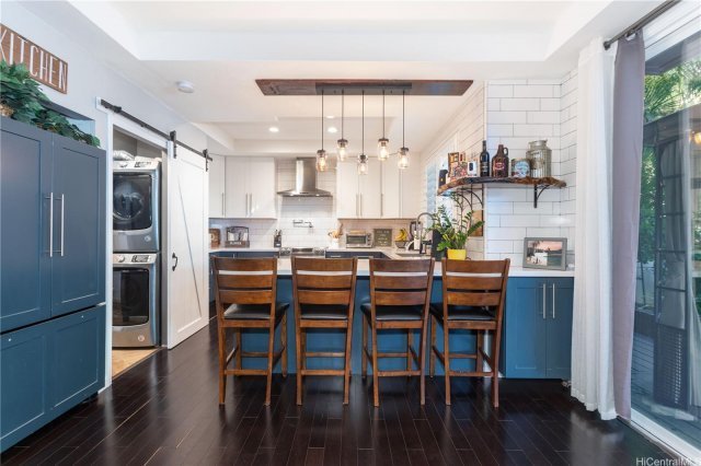 Shows like a model home! Attention to detail throughout and rarely available 3 bedroom Ko Olina Fairways home with yard space and 4 parking!! Beautifully upgraded kitchen with new cabinets, countertops, stainless steel appliances, lighting fixtures, and even a pot filling faucet over the stove! 3 new split a/c units and additional attic insulation to keep upstairs cooler. Spacious garage with additional space for storage and workbench, as well as 5 mounted storage units, 2 have lifts for ease and convenience. Dark bambood hardwood flooring throughout, custom paint and fully upgraded bathrooms are just a few of great touches throughout. Yard has astroturf for low maintenance and additional seating area outside of gazebo. Too many features to share, come look for yourself!