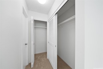 Rarely available! Move-in ready second floor corner-end unit at the highly desired Kuani Hillside in Waipio. This spacious two-bedroom, two-bath townhome features new paint throughout, laminate flooring, high ceilings with crown molding, a large ensuite master bedroom, A/C and ceiling fans in every room, a full size front load washer/dryer, gas cooking, and a large private lanai that is perfect for entertaining. Two parking stalls are also included; one covered/one open PLUS lots of guest parking. The unit is perfectly located in the complex to enjoy ocean and city views. Kuani Hillside is a pet-friendly community centrally located with easy access to the freeway, military bases, shopping and dining, and walking distance to the playground, park, sports fields and basketball courts.