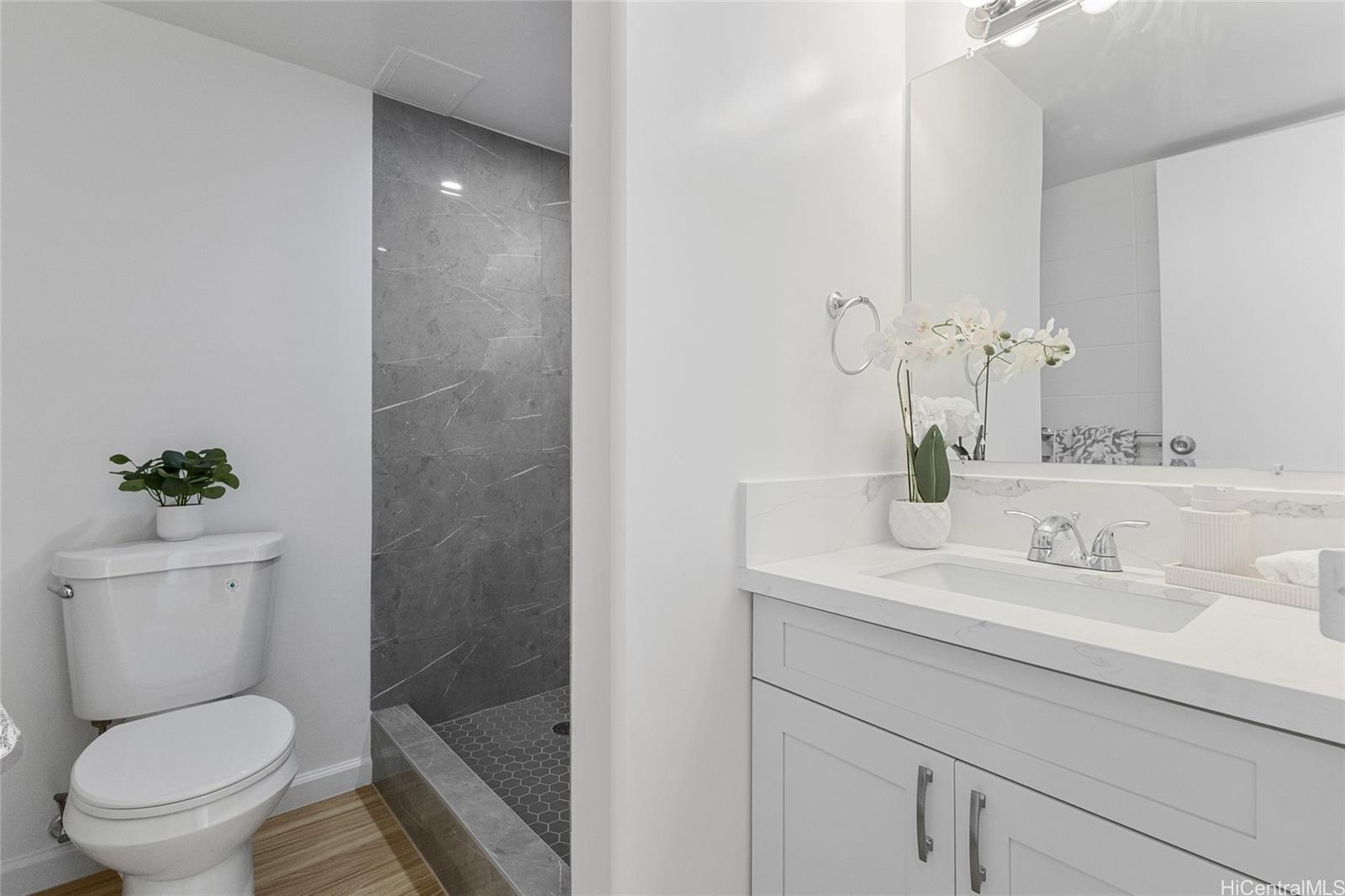 Beautifully and completely remodeled 2-bedroom, 1-bath, 1-parking unit at Leolua Regent in the heart of Waipahu! This move-in ready home features updated flooring, fresh interior paint, and modern finishes throughout. The renovated kitchen showcases contemporary cabinetry and countertops, along with a brand new cooktop/oven, new refrigerator, and new garbage disposal. The bathroom has been very nicely remodeled with stylish, quality finishes, creating a fresh and contemporary feel. Conveniently located near shopping, dining, rail stations, freeway access, and schools, this home offers both comfort and convenience. Perfect for first-time buyers or investors looking for a turnkey opportunity in a central location.