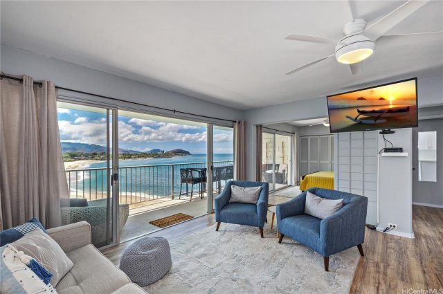 Ready to get away? Here is your chance to live the dream, in a penthouse oasis overlooking beautiful Makaha Beach! Completely remodeled, & expertly designed, with open eat-in kitchen, flowing out through the living area to your private double-sized lanai. Bright, clean, & airy, close to hiking, golfing, diving, fishing, & some of the most beautiful beaches in all of the islands. This unit can be sold furnished & turn-key, ready for you to move in, relax, & unwind. These RARELY become available(only one other unit in over 20 years have come on the market), so don't miss out! Makaha is world-famous for not just it's surfing, but also the diving out front with turtles and dolphins, as well as Humpback Whale watching in the winter. Don't wait to live your best life, make this your home today!